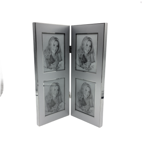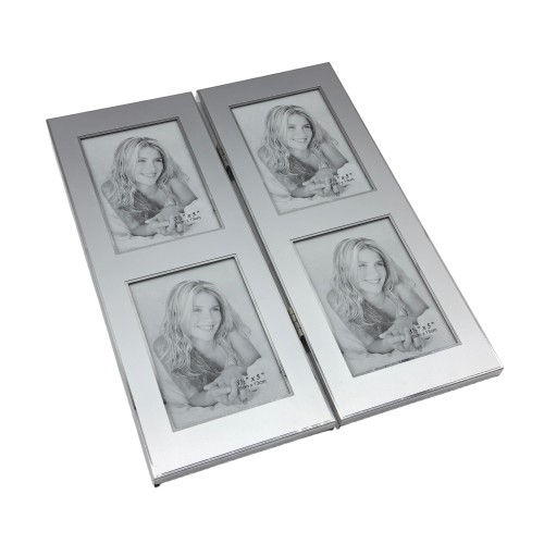 Hinged Double Simply Silver Metal Picture Frame With Silver Edge