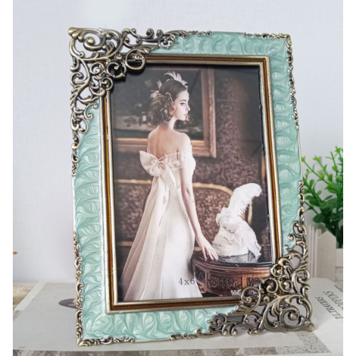 Vintage Enamel Picture Frame,Green Ornate Picture Frames For Wall And Tabletop Display Family Office